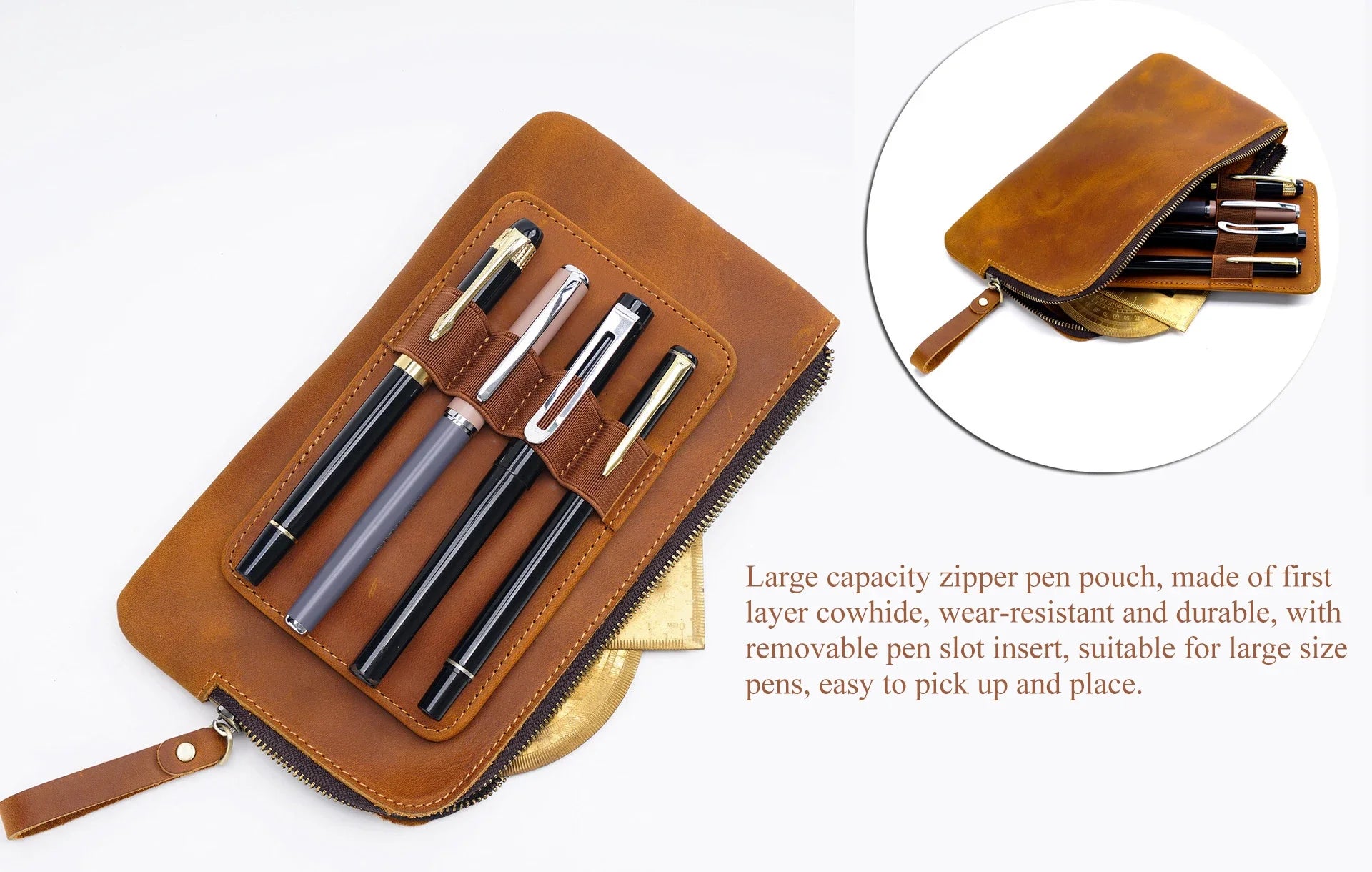 Keep your pens stylishly sorted with this playful leather zipper pen case! Designed for both men and women, it features a removable pen tray to organize your stationery with ease—perfect for school, work, or anywhere creativity strikes. Durable and chic, it’s your new favourite pen pouch!