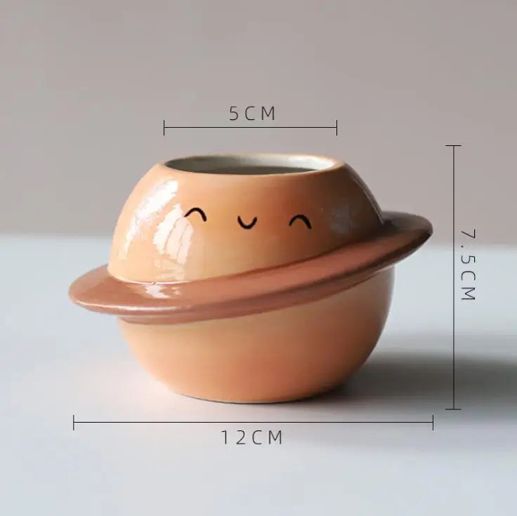Add a touch of planetary delight to your succulent collection with our Planet Ceramic Succulent Pot. Made from durable ceramic, this pot not only looks out of this world but also provides the perfect home for your beloved plants. (Note: Succulents not included.)