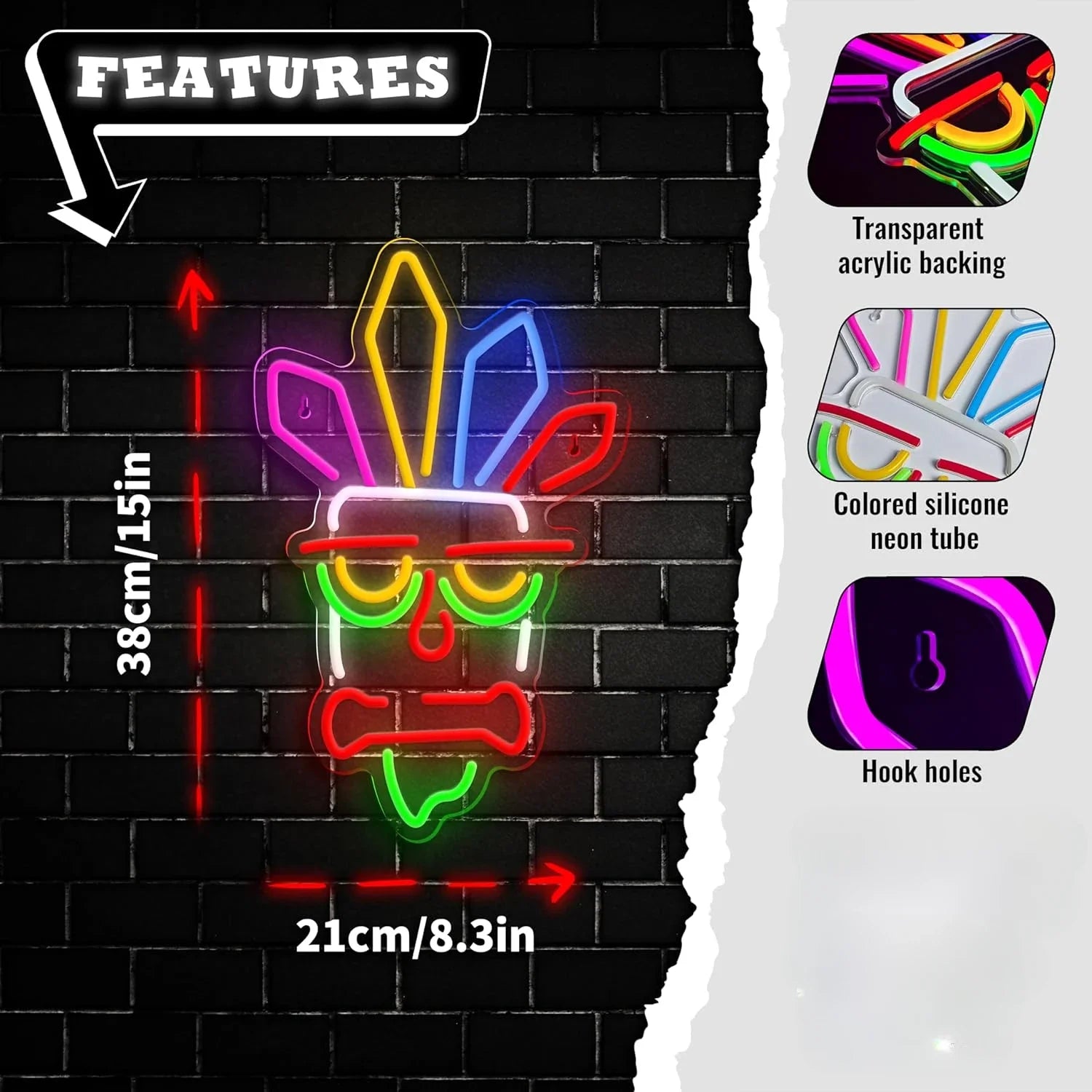 Bring island vibes and bright energy to any room with this Tiki Mask LED Neon Sign. Perfect for restaurants, bars, man caves, or parties, its dimmable feature lets you set the mood just right. Whether celebrating a birthday or decking out your space, this playful neon sign adds a fun, tropical touch that keeps the good times glowing.